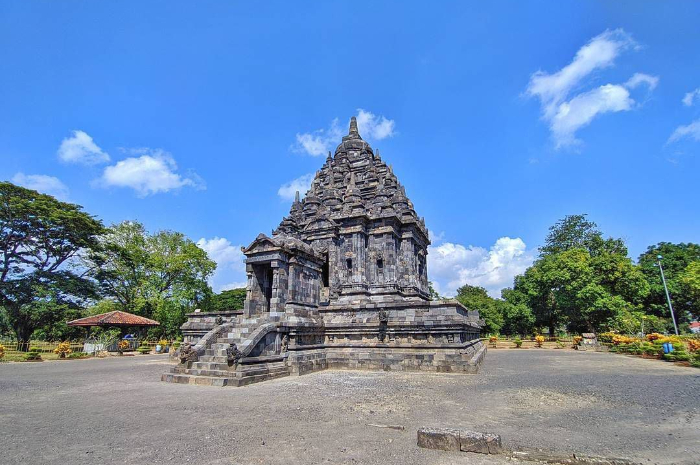 Ketika memasuki kawasan komplek candi, Kamu akan menyaksikan bangunan berbentuk ramping dengan atap stupa menjadi simbol Gunung Meru.