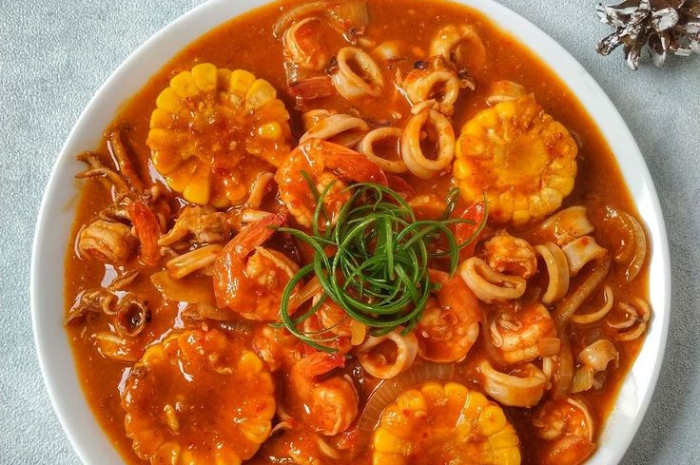 Pedasnya cabai, rasa gurih seafood, dan manisnya jagung menciptakan paduan rasa yang sempurna.