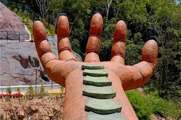 Salah satu spot paling banyak diminati adalah tangan raksasa yang berada di ketinggian.