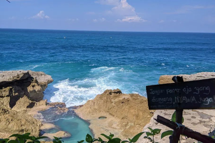 Di sini Kamu bisa mengabadikan momen-momen estetik bersama bebatuan karang dan laut biru lepas.