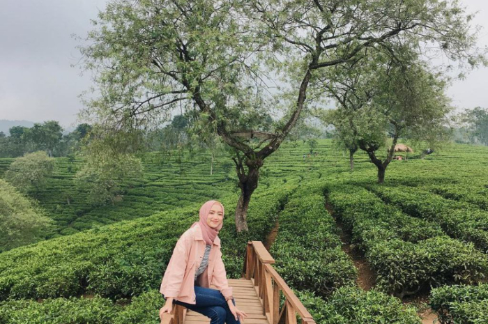 Spot ini kerap menjadi tempat untuk berburu foto Instagramable dengan latar hijaunya perkebunan teh.