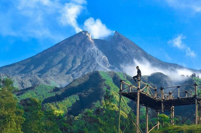 Gardu pandang tersebut memiliki ketinggian hingga 5 meter dengan view Gunung Merapi nan mempesona.