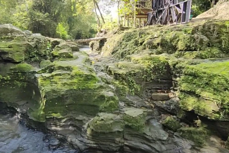 Pengunjung dapat menikmati hamparan pepohonan bambu yang rindang, batuan-batuan unik, dan tentu saja, aliran air yang jernih dari Sungai Opak.