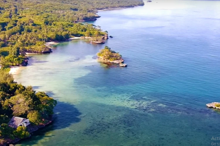 Salah satunya adalah sebuah batu tengah pantai yang dihiasi oleh tumbuhan hijau yang subur.