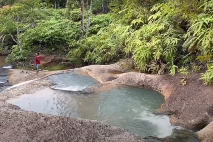 Kolam-kolam alami yang dikelilingi oleh pepohonan hijau memberikan kesan damai dan menenangkan.