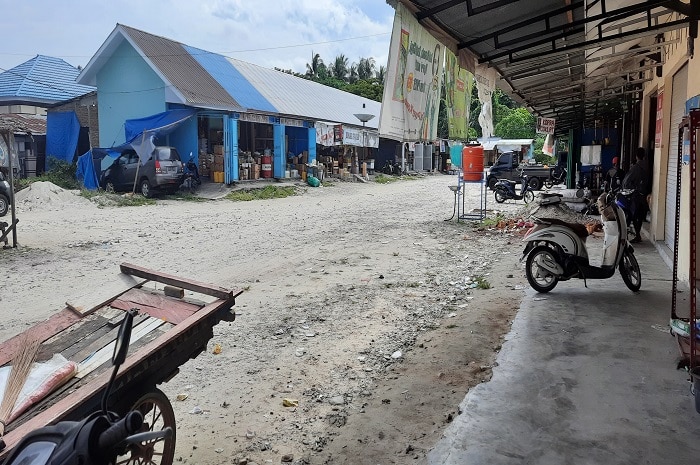 Kondisi jalan itu sangat mengganggu karena kadang ada serpihan batu terlempar ke orang yang berjalan kaki atau ke toko di pinggir jalan saat ada kendaraan roda empat atau roda dua melintas cepat.