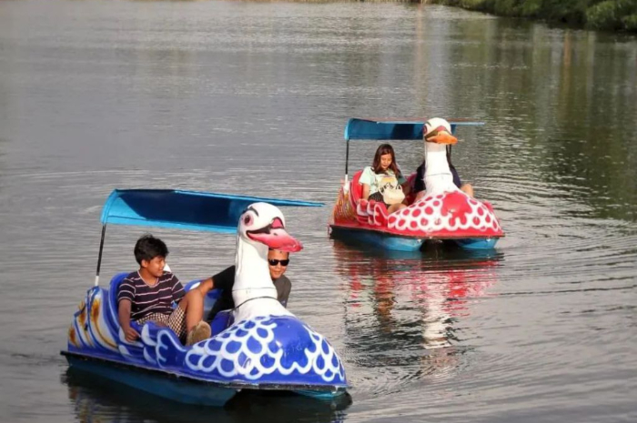 Di sini juga tersedia wahana menarik yaitu sepeda air yang bisa disewa untuk mengelilingi danau buatan.