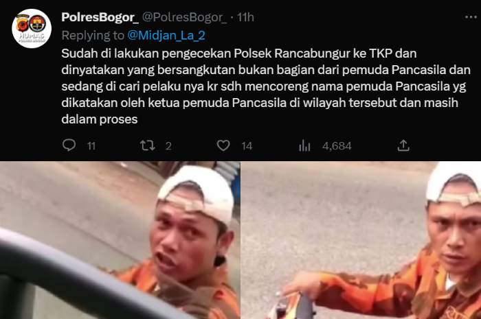 Melalui pernyataan Polres Bogor terkait pria berseragam ormas melakukan pemalakan pada supir truk dalam tautan akun Twitter @PolresBogor_, pelaku bukanlah bagian dari ormas Pemuda Pancasila.