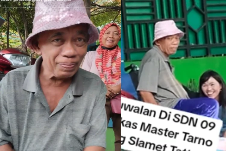 Dalam beberapa video yang diunggah oleh akun TikTok @slamettato1, Pak Tarno tampak berjualan mainan di beberapa SD.