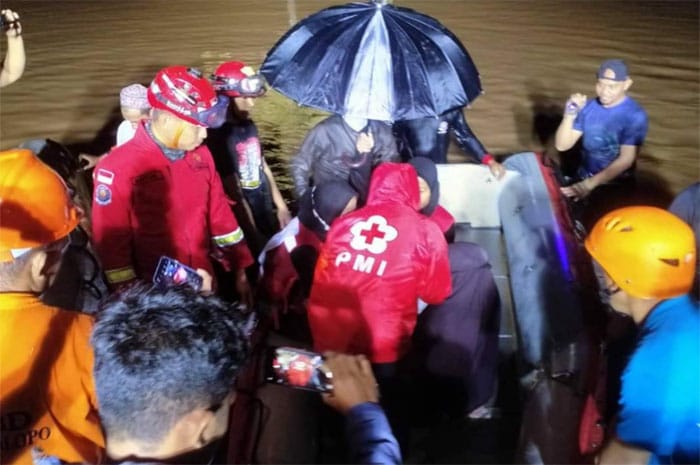 <p>Foto: Evakuasi korban banjir di Palopo.</p>
