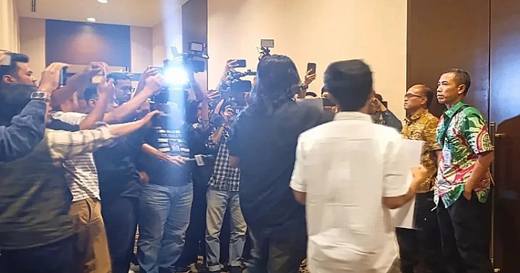 Insiden itu terjadi pada Sabtu, 15 Maret 2025, sekitar pukul 18.00 WIB, ketika tiga orang yang mengaku sebagai bagian dari Koalisi Masyarakat Sipil memasuki Hotel Fairmont.