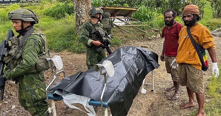 Potret proses evakuasi jenazah guru korban serangan kelompok kriminal bersenjata (KKB) di Distrik Anggruk, Kabupaten Yahukimo Source: (Foto/ANTARA FOTO/HO-Dispenad/YU)