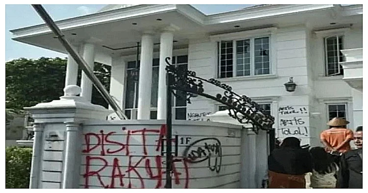 Sebuah video beredar memperlihatkan kediaman artis sekaligus anggota DPR di kawasan Jakarta Timur diserbu massa pada Sabtu malam, 30 Agustus 2025.
