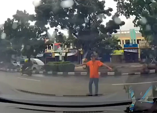 Aksi tersebut terekam oleh kamera belakang mobil dan memicu respons dari pengemudi yang merasa tidak terima mobilnya dilempar uang.