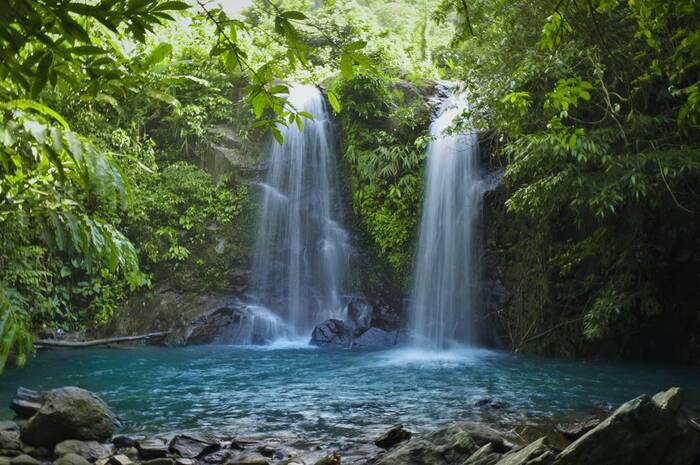 Debit air yang deras dan segarnya semburan air terjun mampu memberikan kesegaran alami yang tak ternilai harganya.