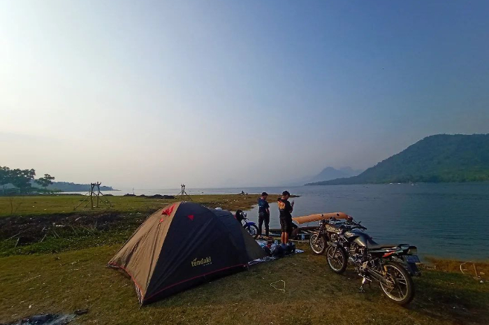 Kamu dapat mendirikan tenda di sini dengan view gunung-gunung yang cantik serta danau nan luas.