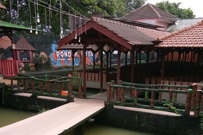 Selain itu, gubuk-gubuk ini berdiri di atas kolam ikan yang cukup luas, memberikan suasana yang nyaman dan menenangkan.