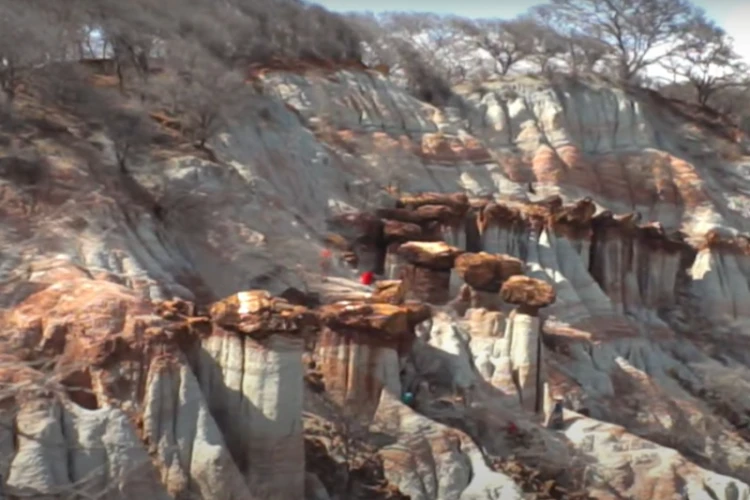 Batuan putih, merah, oranye, dan cokelat membentuk pemandangan yang memukau, membuat pengunjung seolah-olah berada di luar angkasa.