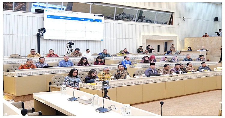 Para Pejabat Pimpinan Tinggi Madya dan Pratama di lingkungan Kementerian ATR/BPN turut hadir mendampingi Menteri ATR/Kepala BPN dalam Rapat Kerja bersama Komisi II DPR RI. (*/Zahra)